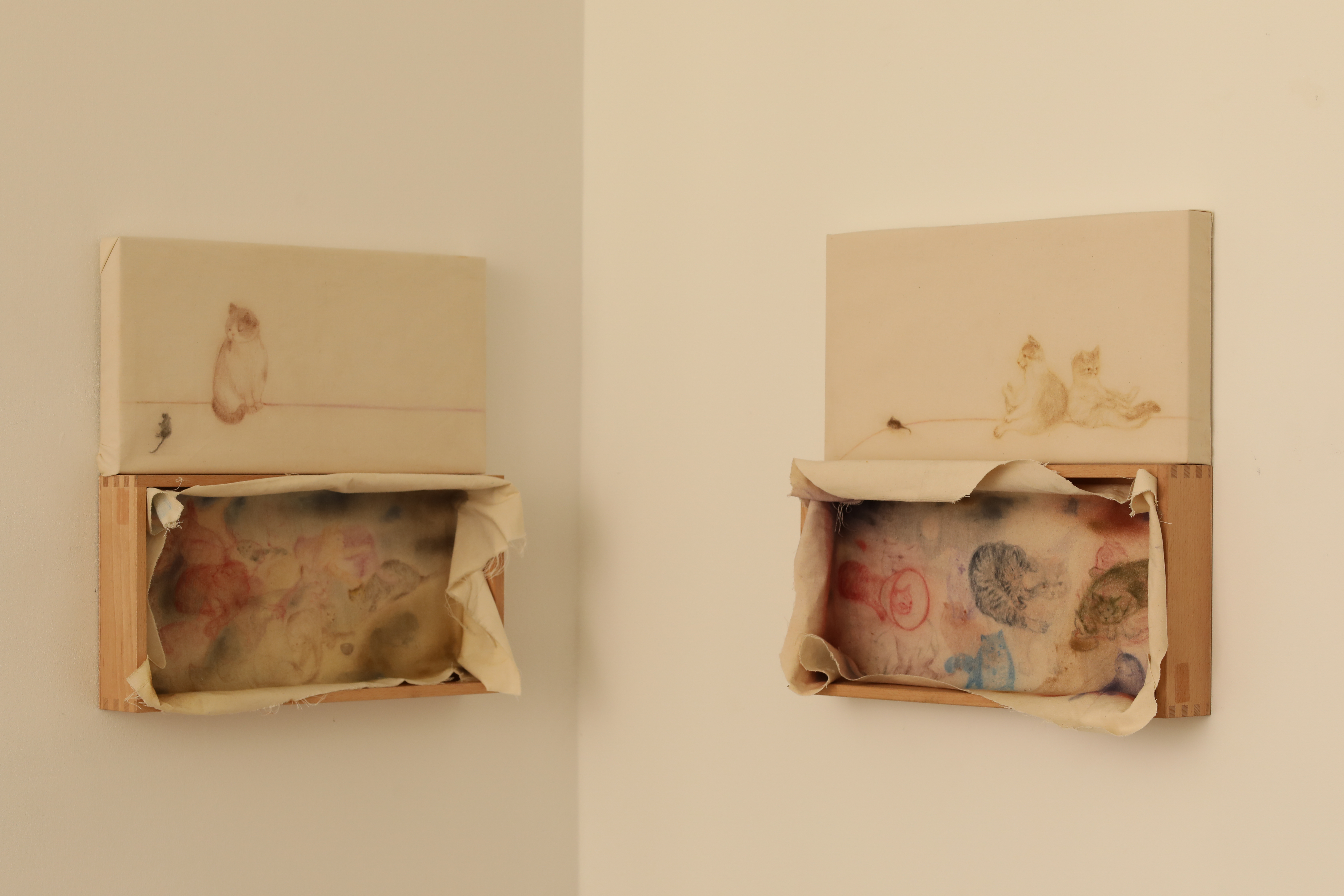Vergänglichkeit, Wandlung und das Spannungsfeld zwischen Kontrolle und Loslassen verbinden die künstlerischen Arbeiten von Himanshi Goyal, Tuangsap Tasawang und Zexuan Liu. Dabei stehen Fabelwesen, (Haus-)Tiere und natürliche Prozesse als stellvertretende Symbole für verschwommene Erinnerungen und leise Interaktionen im Zentrum ihrer Arbeiten. Sie spiegeln das Flüchtige des Moments und die fragile Beschaffenheit von Erinnerungen, die kommen und gehen, wider.